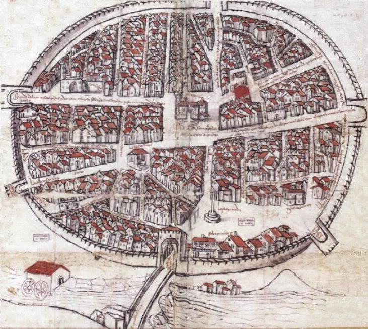 El plano urbano de Aranda de Duero en el año 1503. Archivo General de Simanacas (Valladolid).