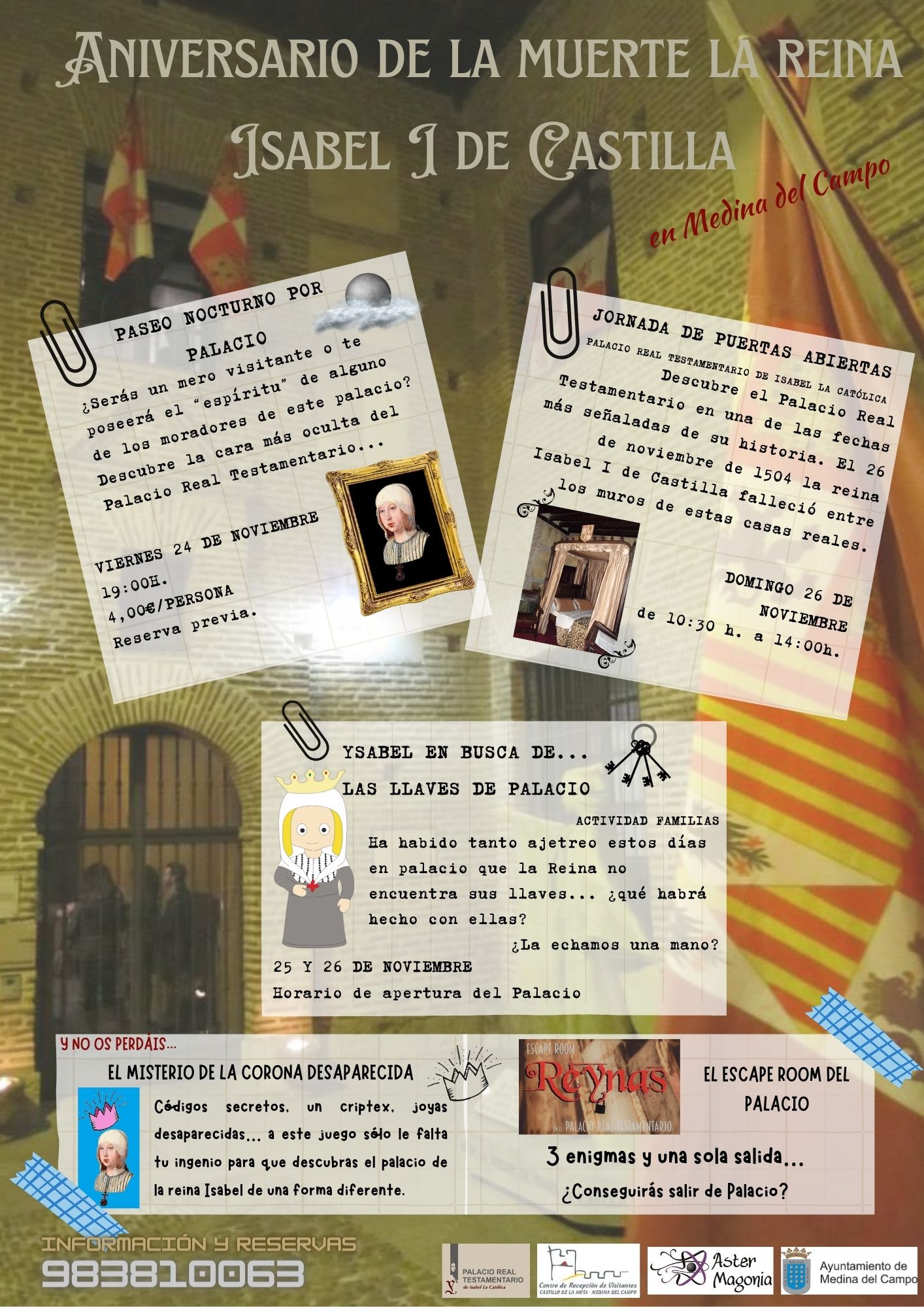El próximo miércoles 26 de noviembre se cumplen 521 años del fallecimiento de la reina Isabel en su palacio de Medina del Campo. Como ya viene siendo habitual, desde Aster Magonia hemos programado varias actividades enfocadas a diferentes tipos de públicos con el...