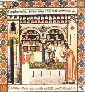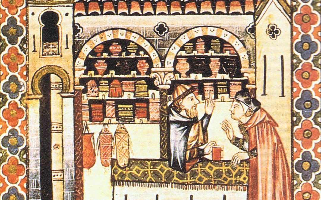 Boticario judío. ilustración extraída de las Cantigas de Santa María, segunda mitad del siglo XIII.