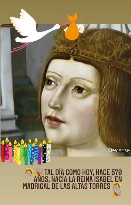 Hoy se cumple el 570 aniversario del nacimiento de la reina Isabel en #MadrigaldelasAltasTorres #Ávila. Una pequeña infanta que no estaba destinada a reinar y a la que le esperaban 53 intensos años por delante. Pasaría a la #Historia como Isabel I de Castilla o Isabel la Católica.
