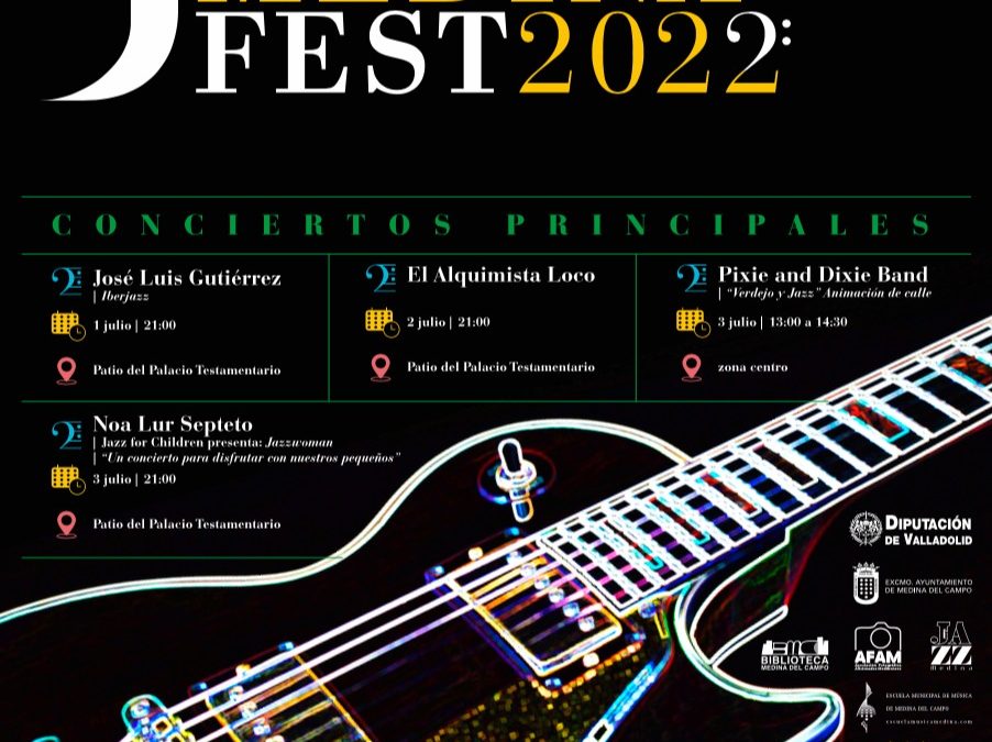 Pero ya sabéis que este festival va más allá y además de conciertos nos ofrece animación de calle el domingo 3 de julio por la mañana de la mano de Pixie and Dixie Band, talleres de jazz a lo largo de las mañanas del 4 a 7 de julio, una exposición de fotografía a cargo de AFAM (Asociación de aficionados a la fotografía de Medina del Campo) en el patio del Ayuntamiento y el jueves 7 de julio, en la Casa de la Cultura, podréis disfrutar de una lectura musicalizada de poesía y Jazz a cargo del club de lectura de la Biblioteca Municipal, los profesores y alumnos del taller de Jazz.